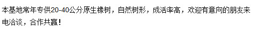 本網頁所展示的有關【常年專供20-40公分橡樹_綠化苗木_潢川華美園林工程有限公司】的信息/圖片/參數等由園林綠化網的會員【潢川華美園林工程有限公司】提供,由園林綠化網會員【潢川華美園林工程有限公司】自行對信息/圖片/參數等的真實性、準確性和合法性負責,本平臺(本網站)僅提供展示服務,請謹慎交易,因交易而產生的法律關系及法律糾紛由您自行協商解決,本平臺(本網站)對此不承擔任何責任。您在本網頁可以瀏覽【常年專供20-40公分橡樹_綠化苗木_潢川華美園林工程有限公司】有關的信息/圖片/價格等及提供【常年專供20-40公分橡樹_綠化苗木_潢川華美園林工程有限公司】的商家公司簡介、聯系方式等信息。