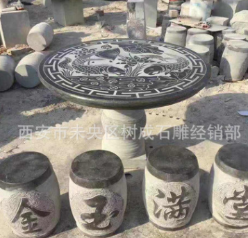 陜西西安石雕青石石桌凳仿古做舊石桌石凳可加工定做別墅庭院裝飾